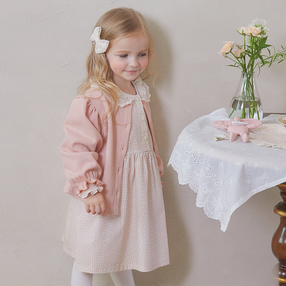 A dress featuring a delicate ditsy floral pattern in soft pastel tones that creates a sweet and charming mood.