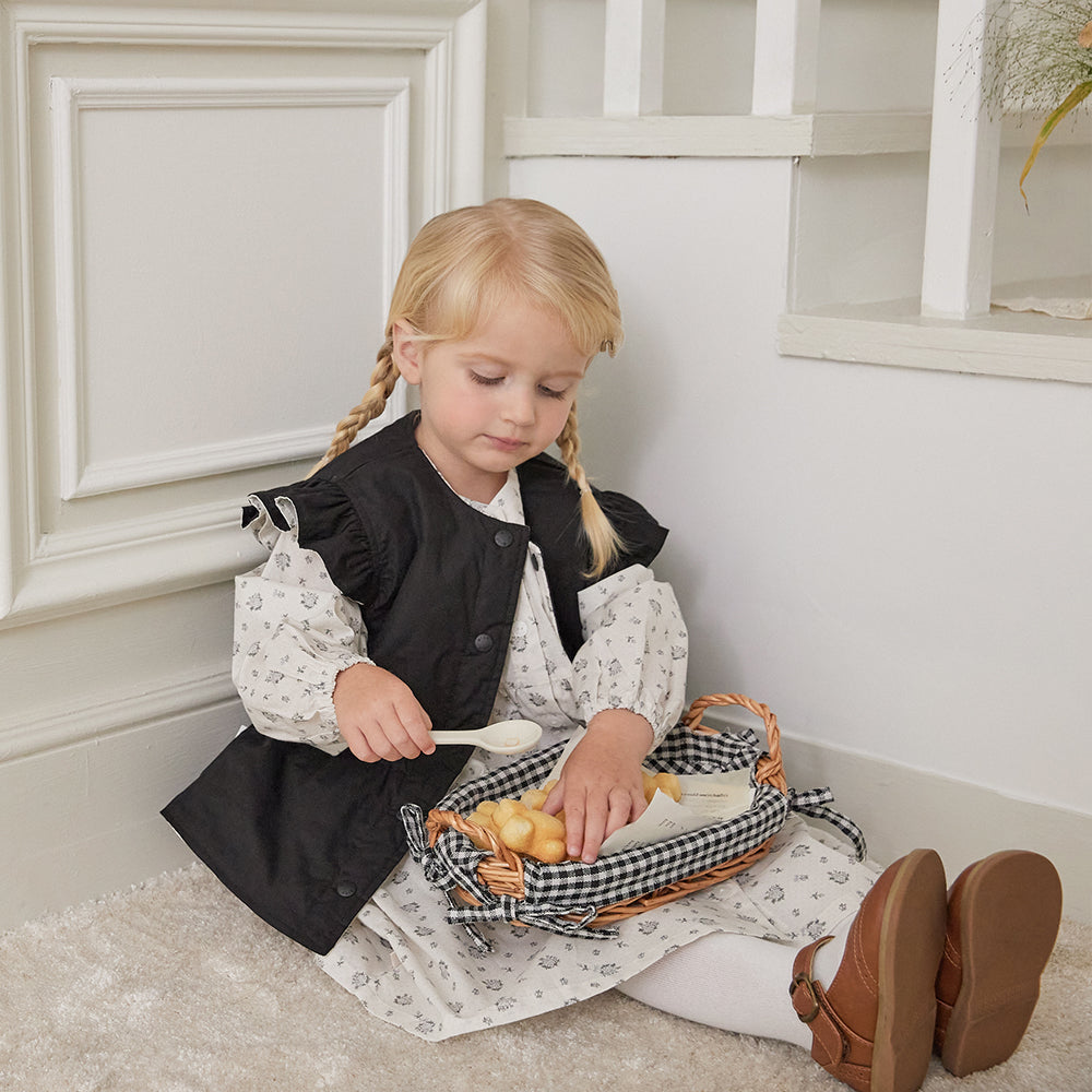 This versatile reversible dress highlights a lovely black mood with endless styling possibilities. Designed to be worn both front and back, it can be styled as a dress or worn open as a cardigan or lightweight outer layer. The relaxed silhouette ensures comfort while adding a sweet and charming touch. Pair it with black accessories — such as vests, outerwear, or headpieces — to create a standout look for weddings, parties, or other special occasions.