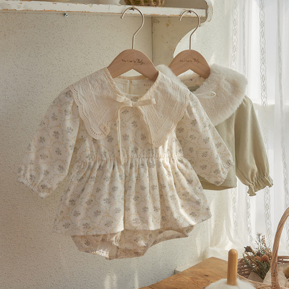 This Skirt Bodysuit combines the sweetness of a dress with the comfort of a one-piece. Featuring a delicate floral print and an attached skirt, it creates an elegant yet practical outfit for your baby. Made from soft, breathable cotton, it feels gentle on the skin and allows easy movement all day. Snap closures at the bottom make diaper changes quick and convenient. Available in two beautiful colors — Pink and Grey — this bodysuit is perfect for both everyday wear and special occasions.