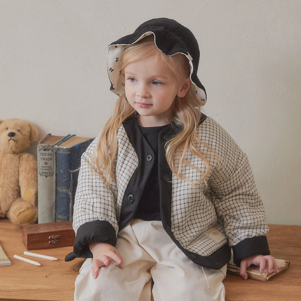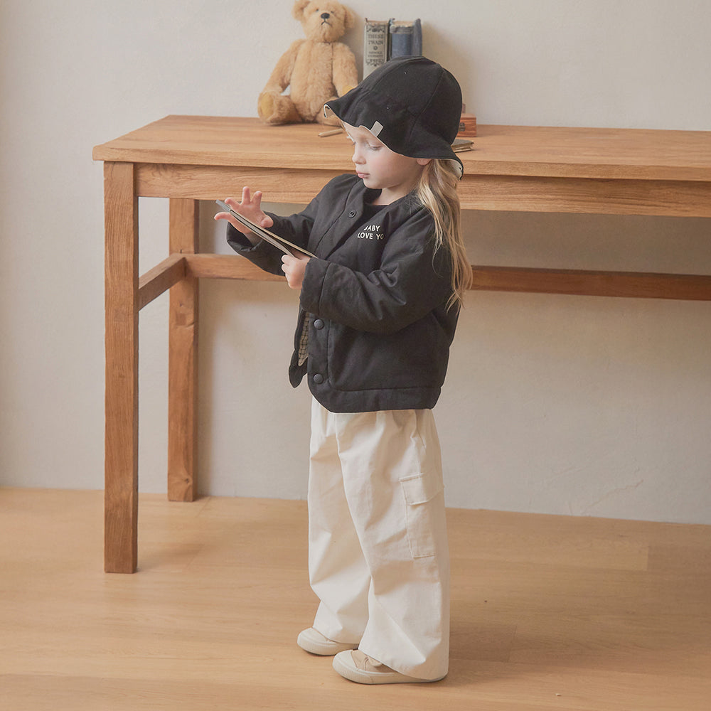 This cozy quilted reversible outerwear is a must-have piece you’ll reach for every day. Made from 100% cotton inside and out, it feels soft and gentle on your baby’s skin while providing comfort and warmth. With 2oz padding, it’s perfect for transitional seasons and early winter wear. Featuring both a solid color and a check pattern, this versatile piece makes styling effortless while adding practicality to your baby’s wardrobe. The front “BABY I LOVE YOU” lettering highlights the brand’s charm, while the reversible design lets you enjoy two styles in one — creating a fresh look day after day.