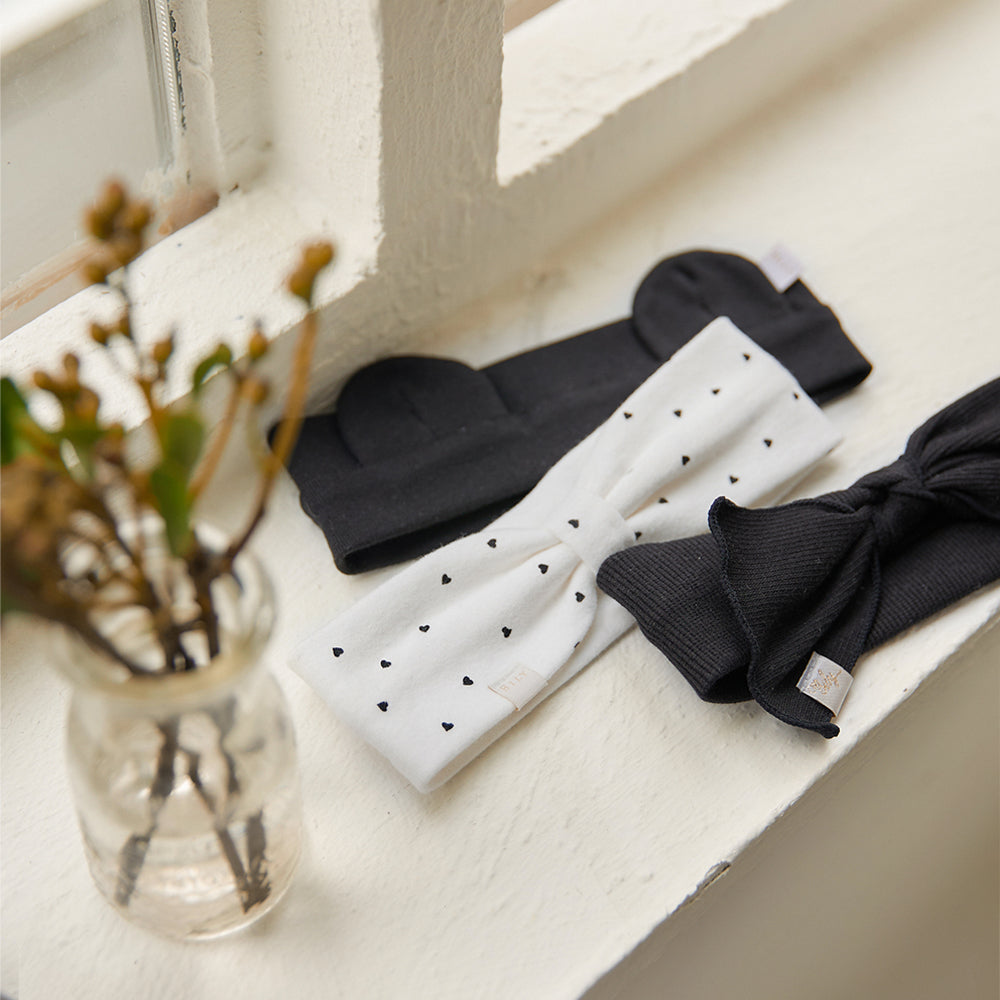 A headband accented with a charming heart pattern for an extra touch of sweetness.