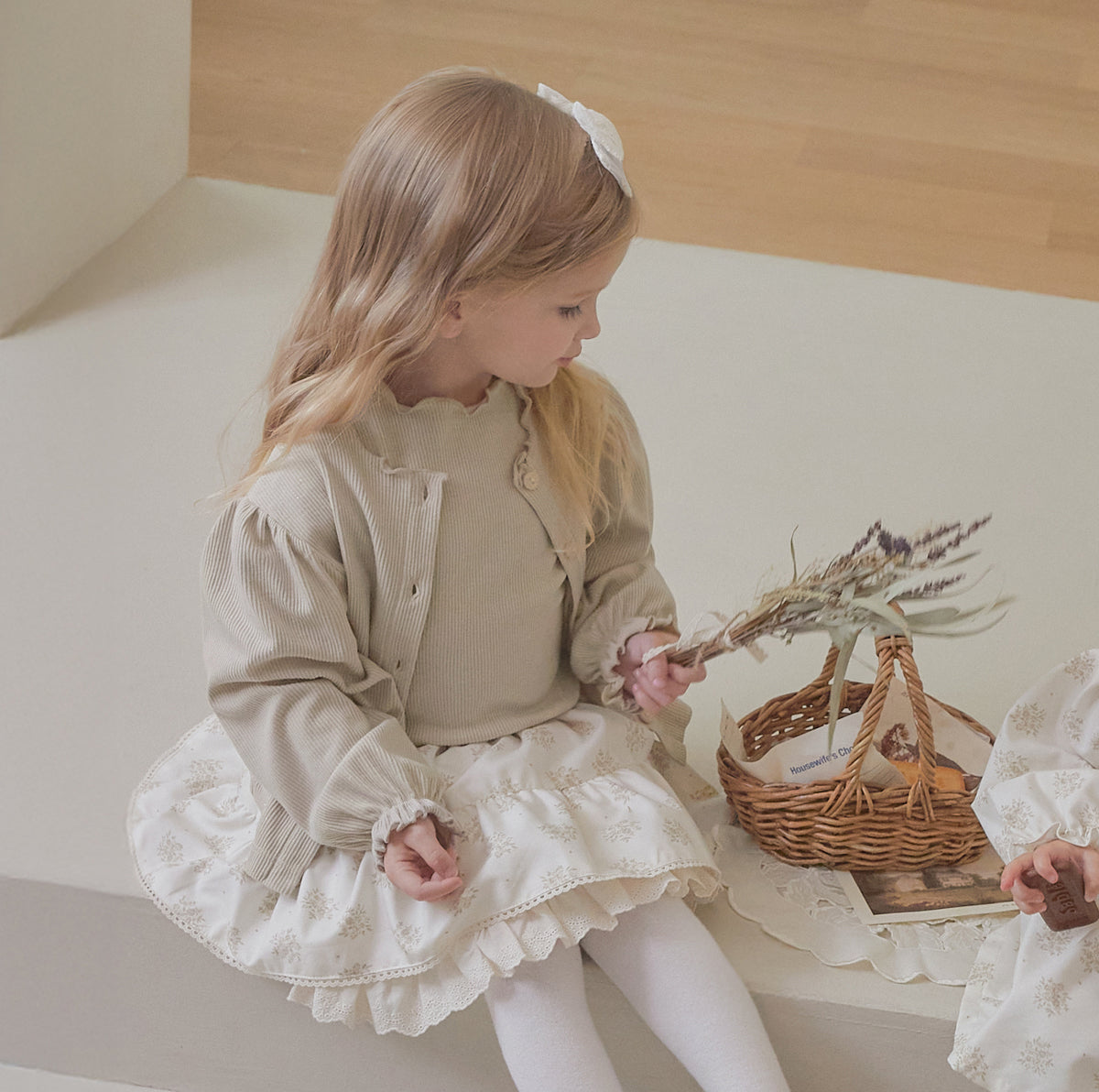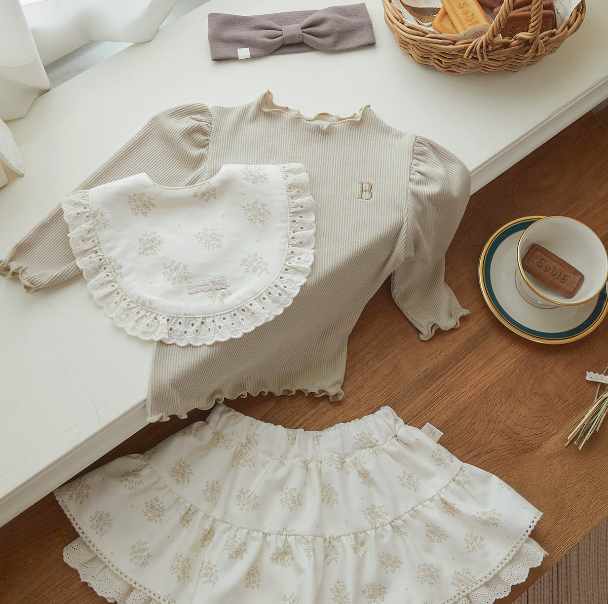 A girls’ ribbed T-shirt crafted from a luxurious fabric with a subtle pearlescent sheen.