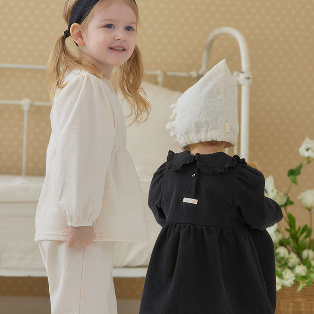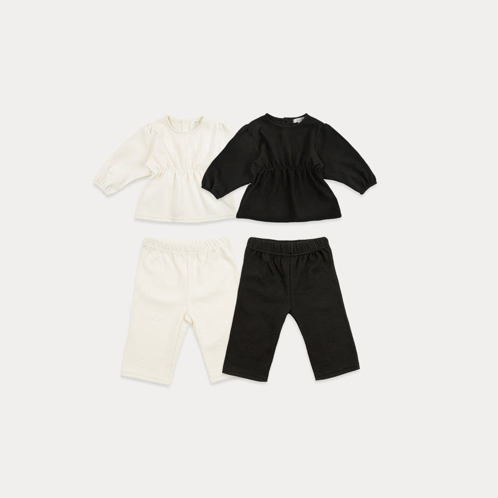 This two-piece set offers both comfort and style for your little one. Featuring a peplum-style top with gentle gathers at the waist and matching elastic-waist pants, it’s designed for ease of movement and everyday wear. Made from soft, breathable cotton, the set feels gentle against delicate skin and keeps your baby comfortable all day. Available in White and Black, this versatile outfit can be dressed up or down for any occasion.